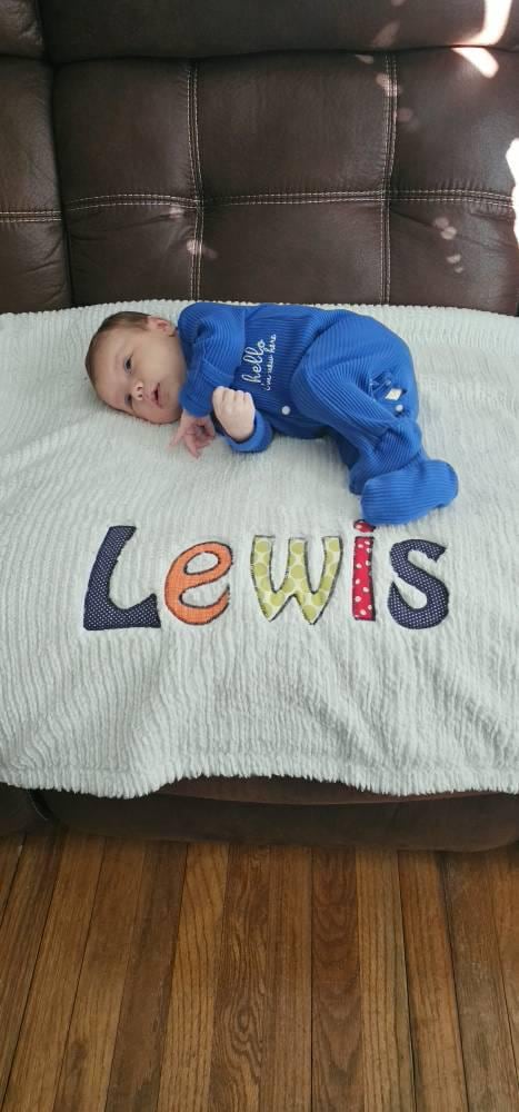 For all those sleepy moments spent cuddling your little one, this personalized blanket is handmade specially for your baby boy with a custom appliquéd monogram of colorful, primary fabric letters. It uniquely and unforgettably displays the name you chose with care.